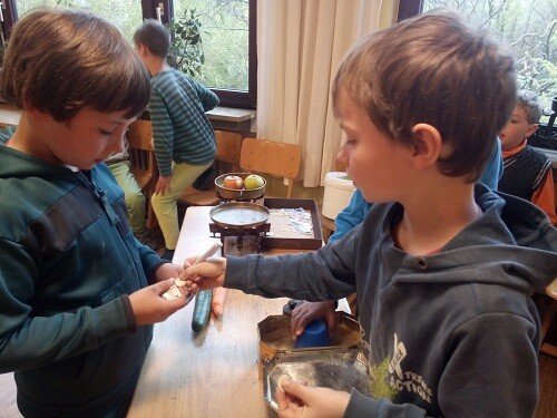 Am nächsten Tag sprachen wir über das Erlebte. Die Kinder hatten viel Freude am selbständigen Kaufen und Verkaufen gehabt. Es wurde geäußert, dass das Kaufen mit Geld „irgendwie einfacher“ ist als das Tauschen. Damit war gemeint, dass Geld flexibler einsetzbar ist als die wenigen Waren, die man beim Tauschmarkt in der Hand hatte. Auch der Gefühlsbezug zu den Produkten war ein ganz anderer als beim Tauschen: obwohl der Zucker oder Getreidekörner als Ware sehr beliebt waren (weil man davon zwischendurch ein bisschen naschen konnte), war der Fokus auf das Abarbeiten der Einkaufsliste gerichtet.