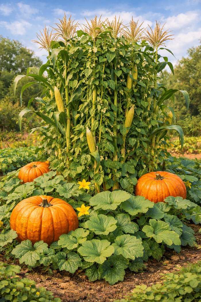 - Bohnen: Klettern am Mais empor und fixieren Stickstoff im Boden, was die Bodenfruchtbarkeit verbessert.