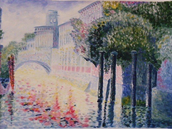 - optische Farbmischung geschieht im Auge: Farbtupfentechnik/Pointilismus, ungemischte Farben über- und nebeneinander verschmelzen im Auge