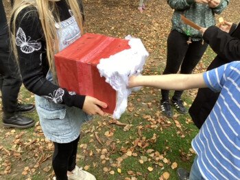 - Die 6. Klasse hatte für die Erstklässler außerdem eine Mutprobe vorbereitet: ein aufregender Lauf durch den „gruseligen“ Keller, den alle tapfer meisterten.